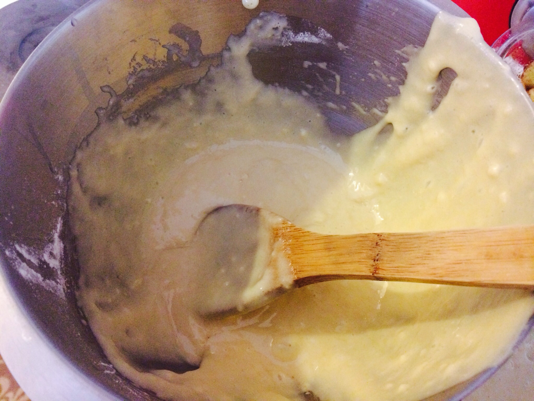 - Βγαζουμε τον κάδο από το μίξερ και προσθέτουμε το αλεύρι, το baking, το αλάτι και τις βανίλιες, και ανακατεύουμε απαλά μέχρι να αναμιχθούν καλά.