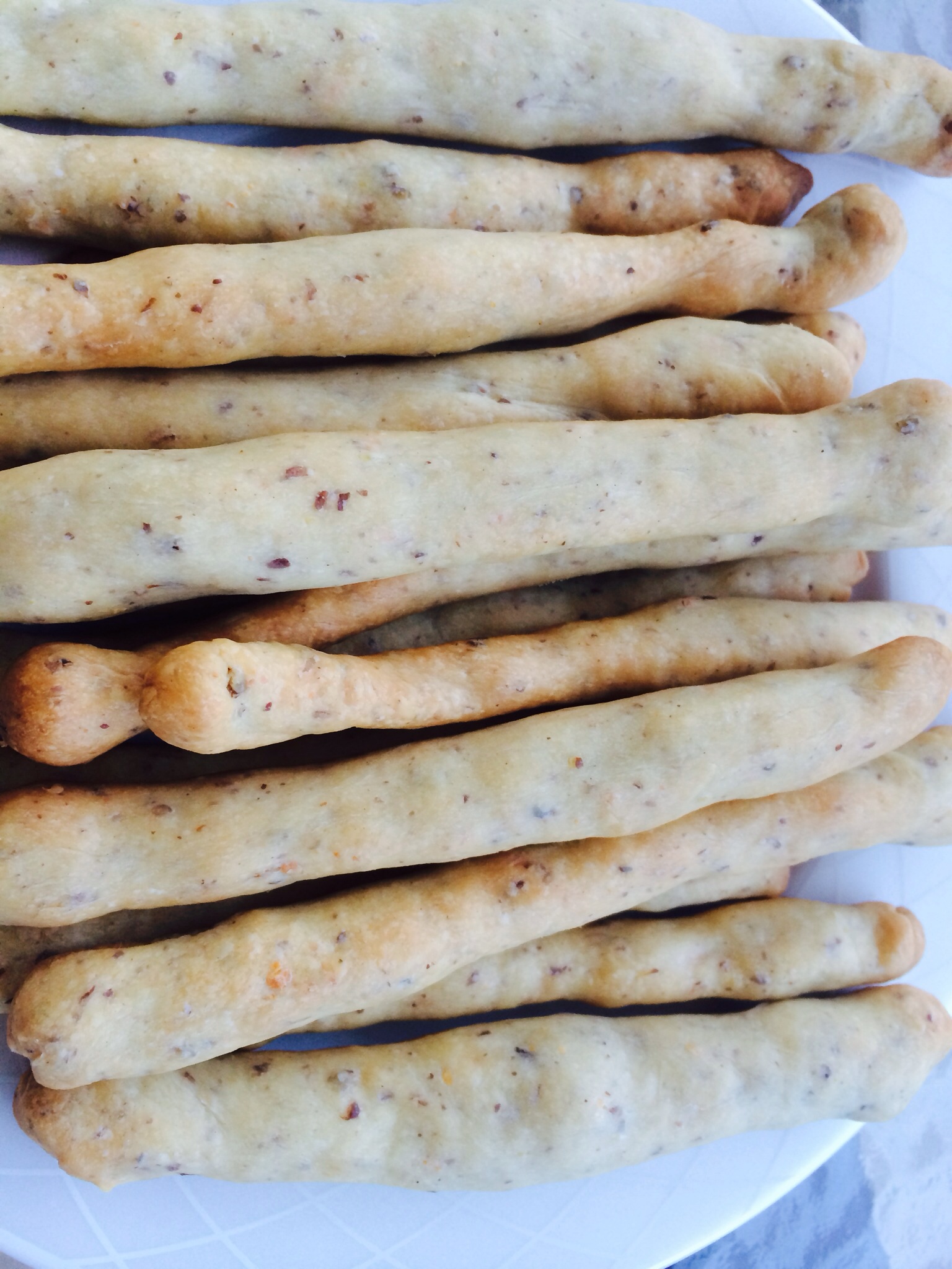Αφού λοιπόν γίνει ελαστική, την αφήνω να ξεκουραστεί λιγάκι, κ στη συνέχεια πλάθω τα κριτσίνια μου. Με τα υλικά που σας έδωσα θα βγάλετε περίπου 500 γρ κριτσίνια. Τα ψήνω στους 200 για 20-30′. Και ορίστε: