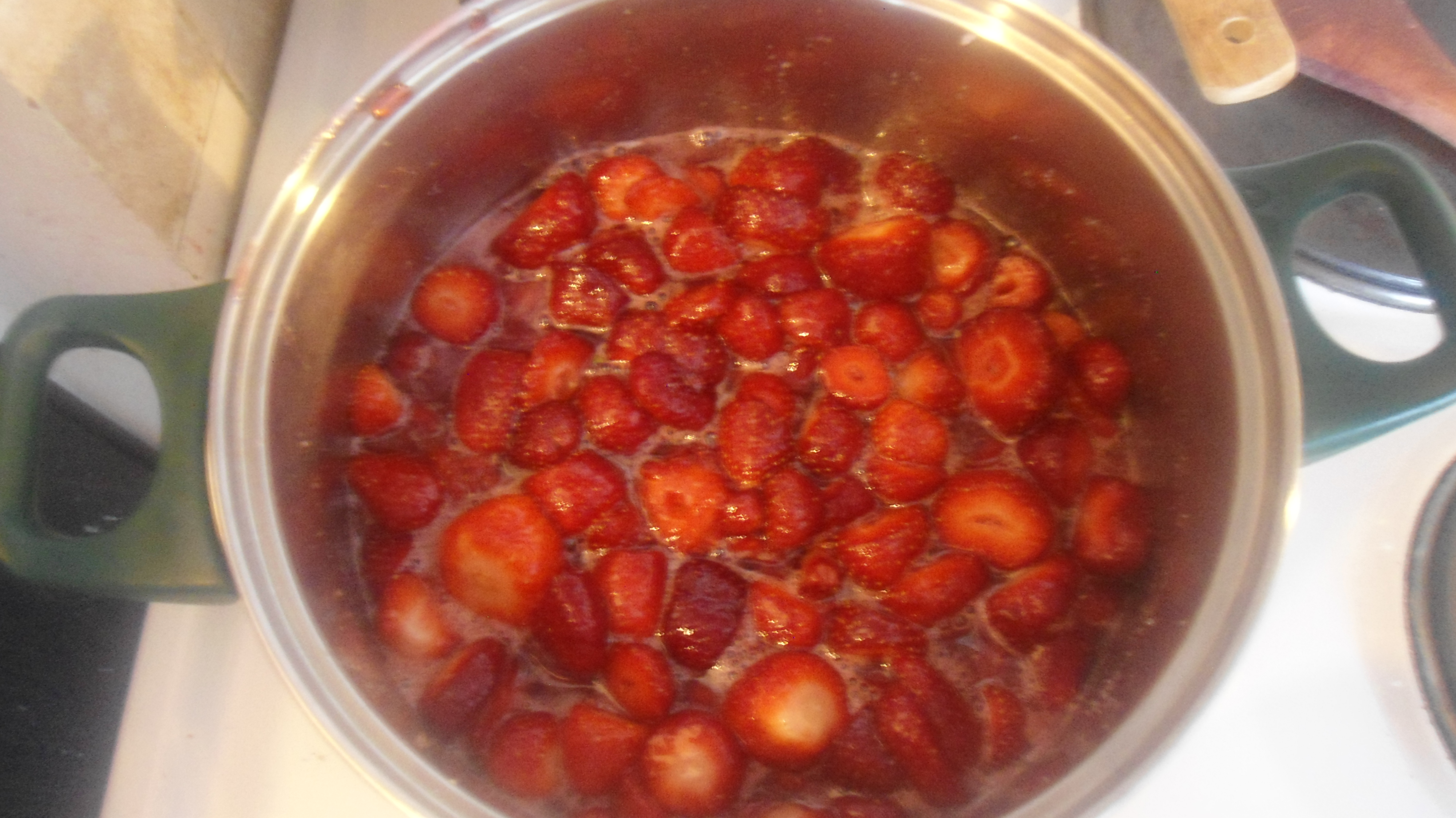 Βάζω την κατσαρόλα στο ψυγείο για δυό τρεις ώρες, μέχρι να βγάλουν οι φράουλες τα υγρά τους. Και μετά αρχίζουν τα ωραία…