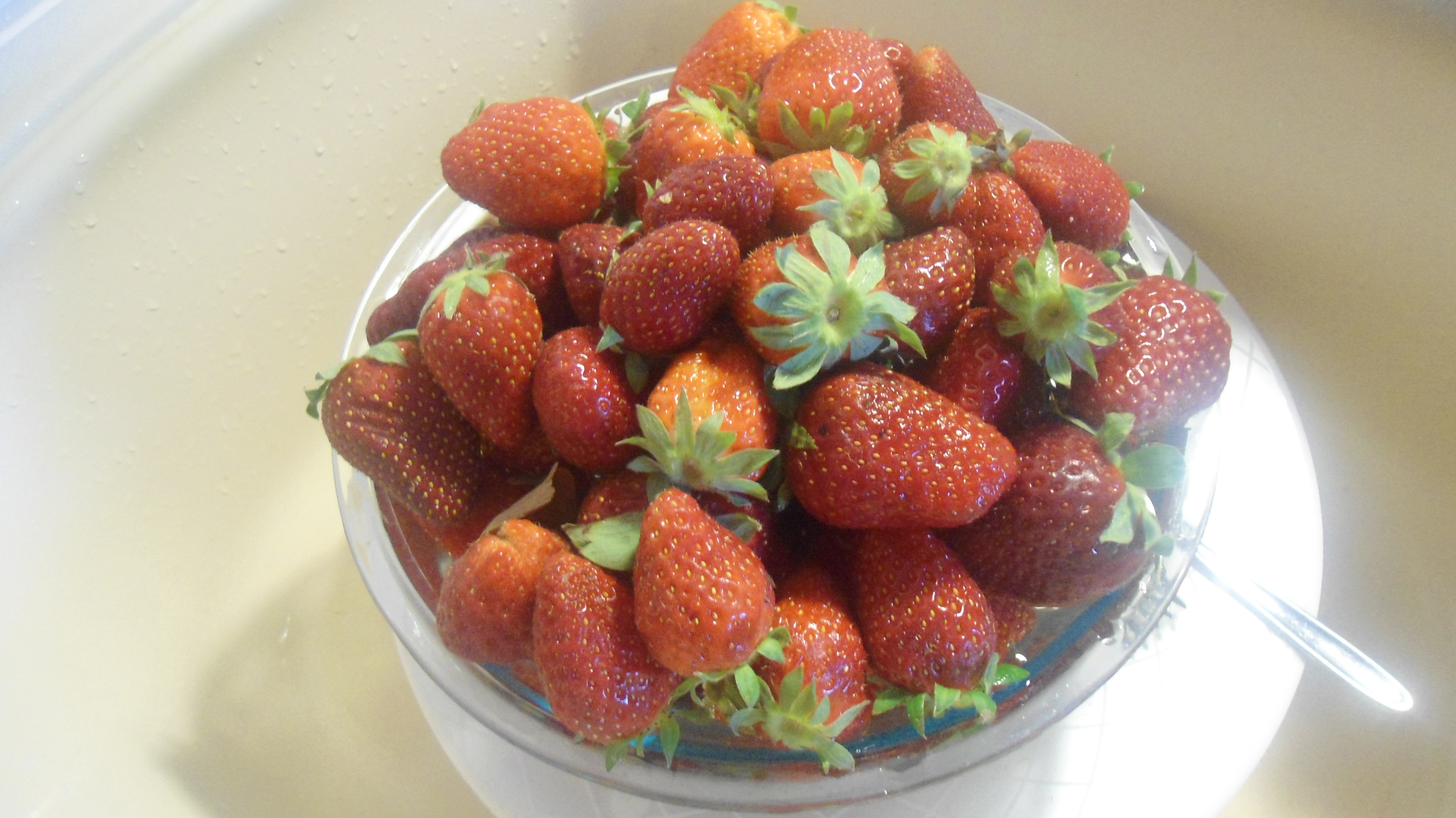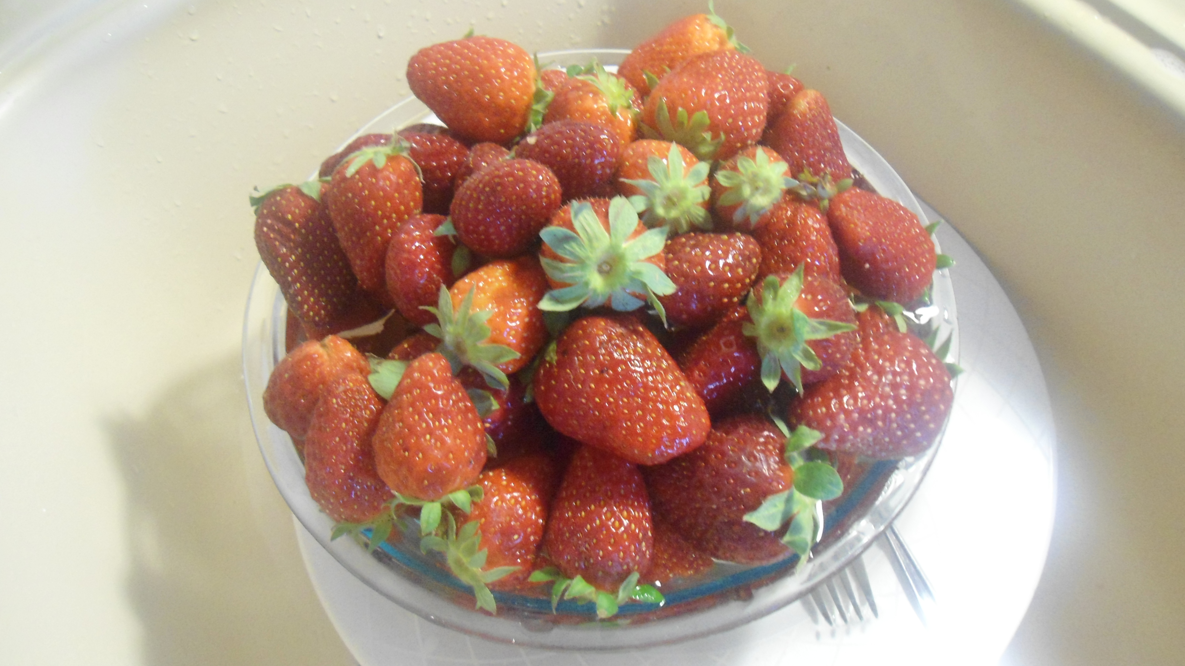 Παίρνω ένα κιλό φράουλες. Ώριμες, κατά προτίμηση. Και τις πλένω. Να, κάπως έτσι: