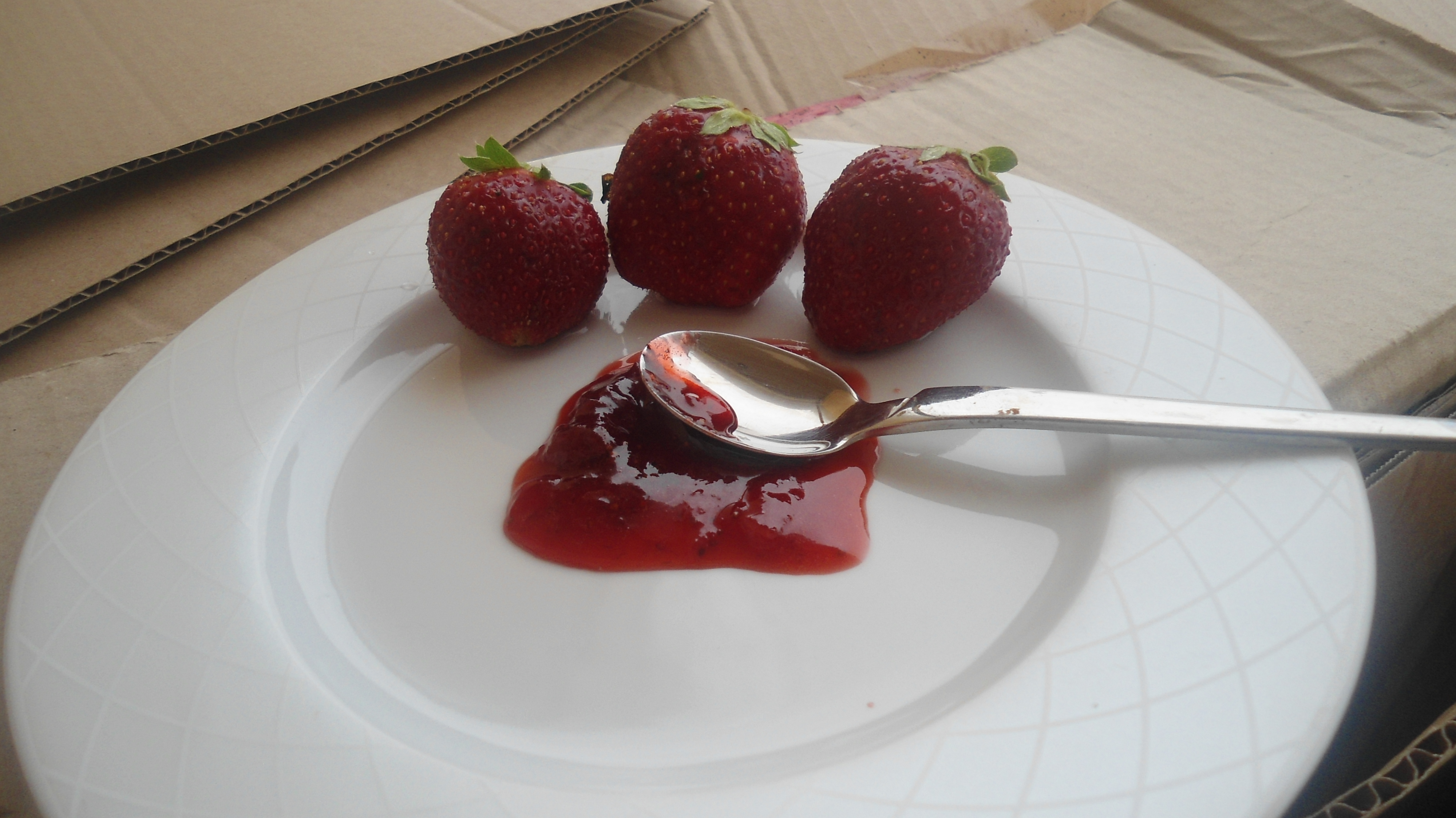 Anyway, η μαρμελαδοφράουλα νομίζω ότι εκφράζει το mood του Μαΐου, ή καλύτερα το mood της άνοιξης, ή καλύτερα ΕΙΝΑΙ η άνοιξη η ίδια! Το πιο γλυκό κόκκινο φρούτο, το πιο όμορφο, νόστιμο και εύκολο!! Έχετε φυτέψει ποτέ φράουλες? Ε λοιπόν εγώ τις θυμάμαι από μικρή, όταν ζούσα στη Φουρνά Ευρυτανίας, μαγευτικό χωριό με υψόμετρο και πολύ χαμηλές θερμοκρασίες όλες τις εποχές του χρόνου, όπου τη φυτεύαμε και άνθιζε και γέμιζε το παρτέρι και πολλαπλασιαζότανε με ρυθμό ανεξέλεγκτο!! Κι εμείς – σαν παιδιά, τι να πεις, – τις κόβαμε και τις τρώγαμε πριν καν κοκκινίσουν, και αγωνιούσαμε να σκάσει ο επόμενος καρπός – λεία στα χέρια μας- και γυρνούσαμε γύρω από το φυτό σαν το λιοντάρι γύρω από το θήραμά του…. Αλλά ας αφήσουμε αυτά τα όμορφα παιδικά χρόνια, που έχουν περάσει εδώ και καιρό – γκούχου – και ας πάμε στην πεντανόστιμη μαρμελάδα μας – σπεύστε στα μανάβικα, πριν αρχίσουν οι εξαγωγές και ανεβεί πολύ η τιμή….